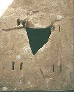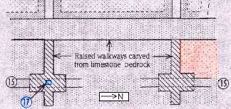 To the North of the northern walkway (#15) and at the same level as the bedrock, is a layer of huge limestone blocks. Some of these blocks are as big as the blocks in the walls of the nearby temples. In November of 1995, cracks as wide as 1/2 inch were allowing sand to disappear into cavities of unknown depth below the blocks.